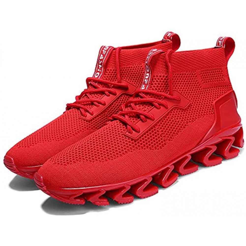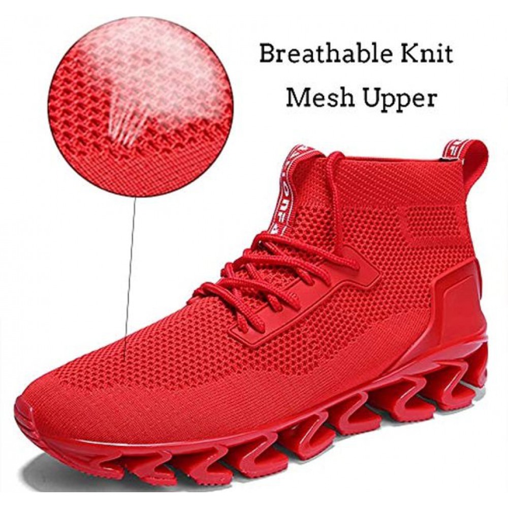 Men's Breathable Knit Slip On Sneakers Lightweight Athletic Casual Sports Shoes High Top All Red