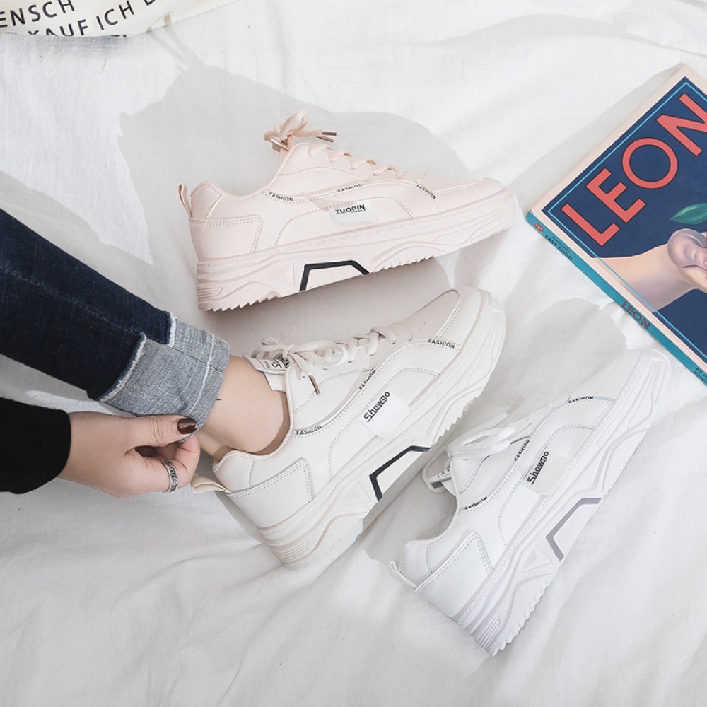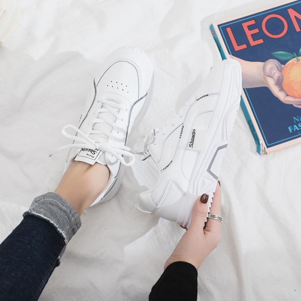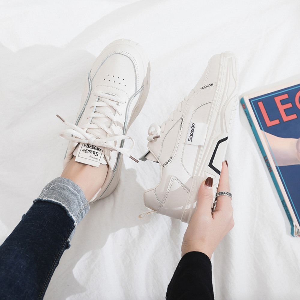 White Shoes Female Spring New Breathable Student Running Board Flat Lace-Up Shoes