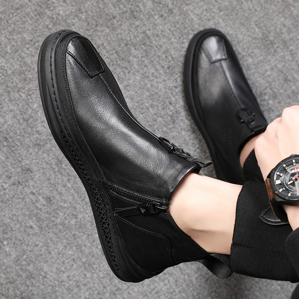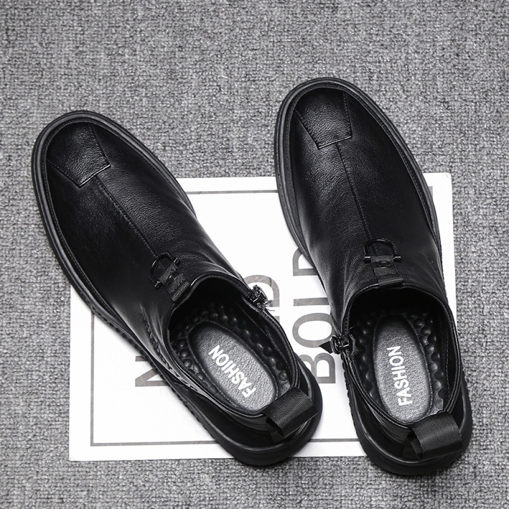 Autumn New Casual Trendy Shoes Side Zipper British Leather Boots Personality Men's Shoes
