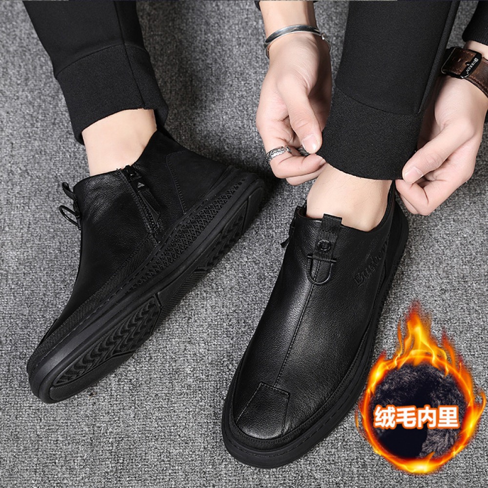Men's Cotton Shoes Plus Velvet Warm Leather Shoes